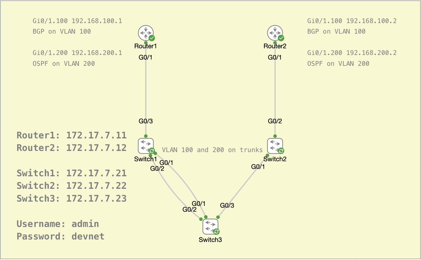 | Switch2 | 172.17.7.22 | admin | devnet |